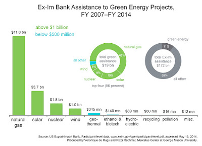 Under the Obama administration and even while Hillary was secretary of state; billions (I tracked about $5-6B) in financing from the Ex-Im Bank went to green (clean, renewable, alternative) energy deals tied to droves of wealthy cronies of both President Obama and Mrs. Clinton. This includes big bundlers, donors and supporters of President Obama, as well as donors, friends and lobbyists of the Clintons and their foundation.